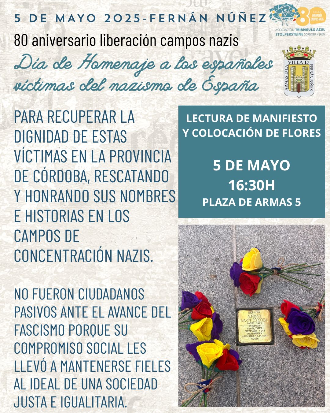 El #IESFranciscodelosRios, ha participado activamente en el acto de conmemoración de la liberación del campo de concentración nazi de Mauthausen, organizado por la Asociación Triángulo azul Stolpersteine de Córdoba y Jaén y el Ayuntamiento de Fernán Núñez. En el acto se reivindicó la importancia de la memoria y el respeto hacia las víctimas que fueron perseguidas, torturadas y asesinadas por razones de etnia, color, orientación sexual, religión o ideas políticas. La memoria es fundamental para que no se vuelva a caer en la barbarie y los centros educativos debemos estar a la vanguardia para la formación e información de nuestro alumnado para evitar que caigan en las garras de la desinformación, la intolerancia y el fascismo.