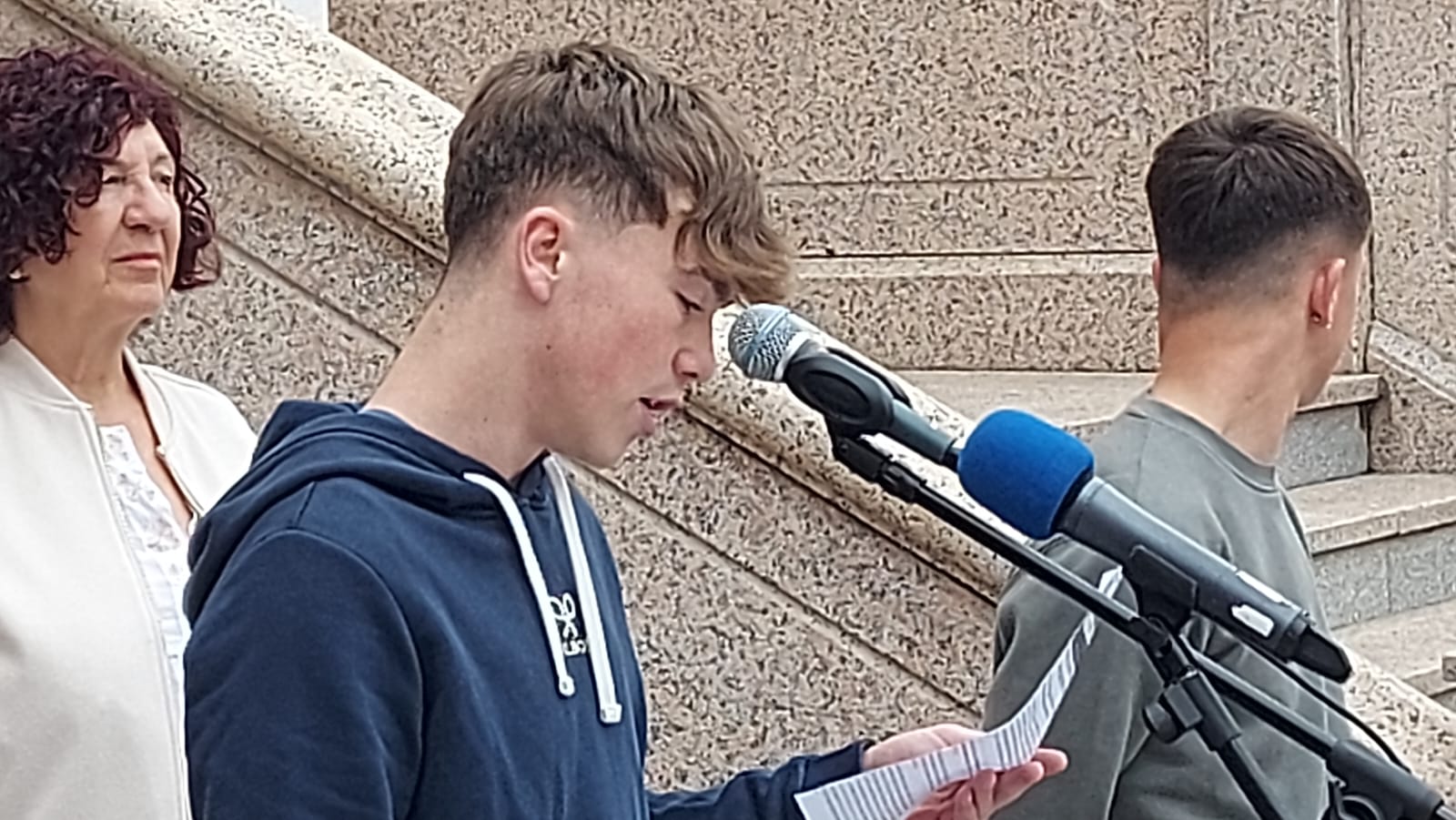 Nuestro alumnado participó activamente leyendo el manifiesto redactado por la Asociación ( Texto al pie) , junto con unos versos de la poeta Concha Lagos, titulados «Me pregunto por ti»y la lectura de la biografía de Alfonso Marín Córdoba, represaliado republicano fernannuñense y asesinado en el subcampo de Mauthausen en Gusen el 18 de noviembre de 1941.