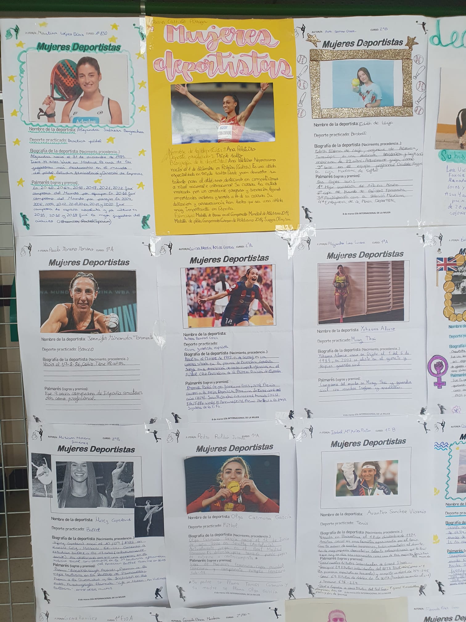 El alumnado de 1º y 2º de ESO ha realizado un mural para visibilizar a grandes mujeres en el ámbito deportivo con motivo del Día Internacional de la Mujer (8M). A través de esta actividad, han investigado sobre deportistas que han roto barreras y han contribuido a la igualdad en el deporte, reflexionando sobre su importancia y legado.