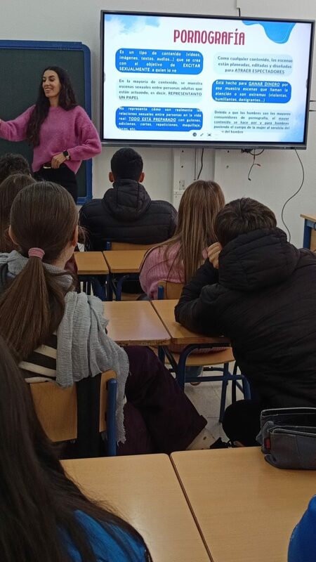 En la #Talentschool del #IESFranciscodelosRíos, nuestro alumnado de Bachillerato ha participado en una sesión formativa para comprender cómo la pornografía influye en la construcción de las relaciones afectivas y sexuales en la adolescencia, impartido por la psicóloga Vanessa Ramírez Cano, organizado por el Centro de Información a la Mujer «Campiña Sur».