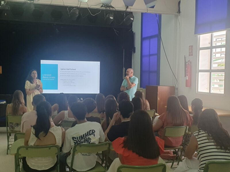 Ayer tuvimos la primera reunión con las alumnas y alumnos de Bachillerato en la que se les expusieron los nuevos proyectos y socios que desde el verano está preparando el Departamento de Internacional.