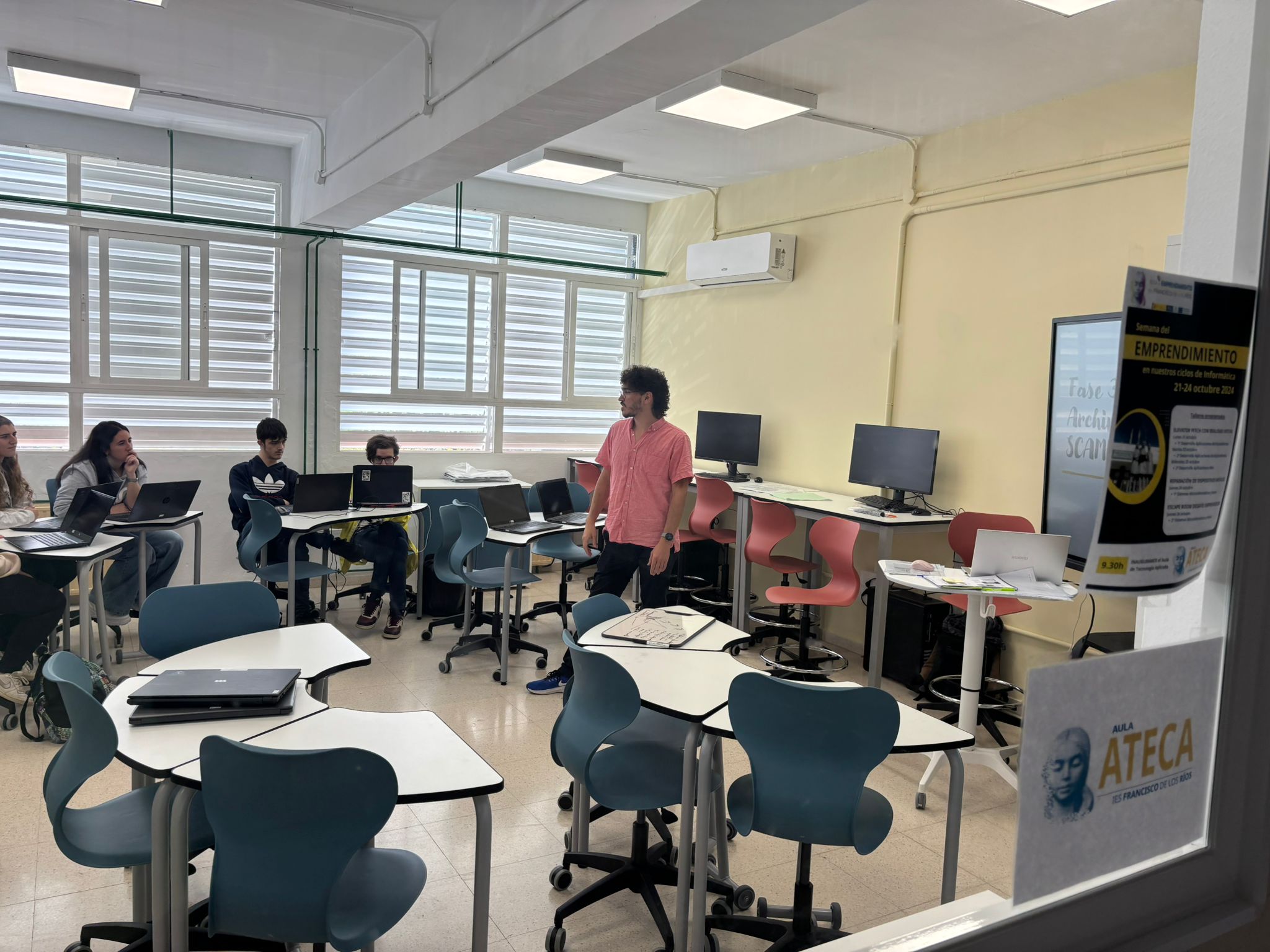 La Semana del Emprendimiento se ha celebrado entre los días 21 y 24 de octubre del 2024 y ha sido un evento extraordinario en nuestros Ciclos Formativos de Informática, diseñado para inspirar y capacitar a los futuros emprendedores. Este año, hemos ofrecido una variedad de talleres dinámicos en el nuevo aula de Tecnología Aplicada (Aula Ateca) que han capturado la atención de nuestros estudiantes y les han brindado herramientas prácticas para dar sus primeros pasos en el mundo empresarial relacionados con el ámbito de la informática.