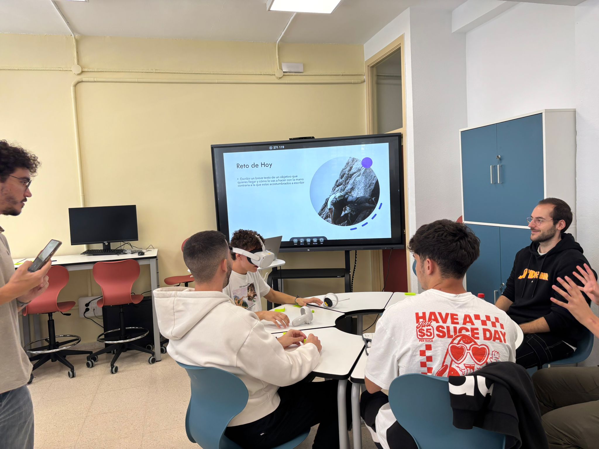 Uno de los talleres más emocionantes ha sido el  Elevator Pitch, donde los estudiantes aprendieron a presentar sus ideas de negocio de manera efectiva en un tiempo limitado. Utilizando gafas de realidad virtual, los participantes pudieron ensayar sus discursos en un entorno simulado, lo que les permitió recibir retroalimentación instantánea y mejorar su confianza al hablar en público. Esta innovadora experiencia combinó tecnología y comunicación, ofreciendo a los estudiantes una visión práctica de cómo captar la atención de inversores potenciales además de participar en dinámicas de grupo motivadoras.