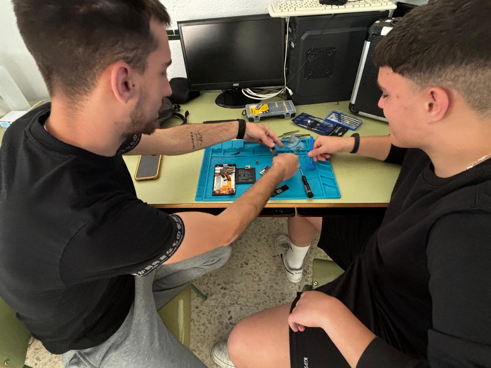 Durante la mañana del 23 de mayo de 2024, en nuestro ciclo formativo de informática de grado medio Sistemas Microinformáticos y Redes, se realizó un taller de reparación de dispositivos móviles a cargo de Antonio Javier Oliván de la empresa Loading de Córdoba, a través del aula de emprendimiento.